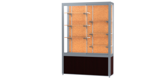 Challenger Walnut Vinyl Display Case, Cork Back w/ Satin Natural aluminum frame finish, 66"H x 48"W x 16"D (Item #: 10404ck-sn-w-WD)