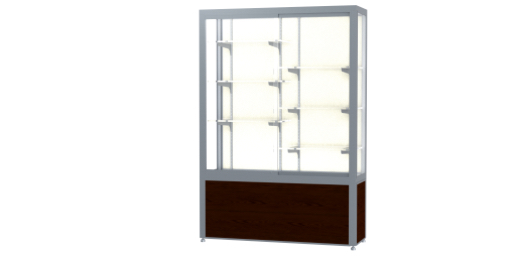 Waddell's Challenger Series are built with heavy-duty construction to withstand the rigors of a busy hallway, a crowded entrance way, or an industrial break room. With anodized durable aluminum extrusions, steel shelving hardware, 1/4" plate glass shelves and sliding tempered glass doors, the Challenger Series can endure real world conditions. Built-in locks are included to add protection to your possessions displayed inside. Choose from three different designs and several style options including wood grained vinyl, aluminum or black laminate to create a robust, yet sophisticated look for the environment of your choosing. The aluminum frame can be finished in Dark Bronze or Satin Natural to complement your decor and displays inside. Challenger is available in widths from 48" to a wide 144". All cases ship to you in Waddell's exceptional packaging and come fully assembled. Challenger is backed by Waddell's Limited Lifetime Warranty and made in the USA. SKU: 10404pb-sn-w-WD.