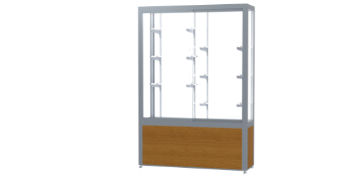 Waddell's Challenger Series are built with heavy-duty construction to withstand the rigors of a busy hallway, a crowded entrance way, or an industrial break room. With anodized durable aluminum extrusions, steel shelving hardware, 1/4" plate glass shelves and sliding tempered glass doors, the Challenger Series can endure real world conditions. Built-in locks are included to add protection to your possessions displayed inside. Choose from three different designs and several style options including wood grained vinyl, aluminum or black laminate to create a robust, yet sophisticated look for the environment of your choosing. The aluminum frame can be finished in Dark Bronze or Satin Natural to complement your decor and displays inside. Challenger is available in widths from 48" to a wide 144". All cases ship to you in Waddell's exceptional packaging and come fully assembled. Challenger is backed by Waddell's Limited Lifetime Warranty and made in the USA. SKU: 10404wb-sn-k-WD.