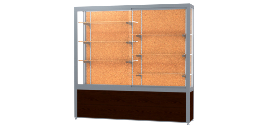 Challenger Walnut Vinyl Display Case, Cork Back w/ Satin Natural aluminum frame finish, 66"H x 72"W x 16"D (Item #: 10406ck-sn-w-WD)