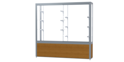 Waddell's Challenger Series are built with heavy-duty construction to withstand the rigors of a busy hallway, a crowded entrance way, or an industrial break room. With anodized durable aluminum extrusions, steel shelving hardware, 1/4" plate glass shelves and sliding tempered glass doors, the Challenger Series can endure real world conditions. Built-in locks are included to add protection to your possessions displayed inside. Choose from three different designs and several style options including wood grained vinyl, aluminum or black laminate to create a robust, yet sophisticated look for the environment of your choosing. The aluminum frame can be finished in Dark Bronze or Satin Natural to complement your decor and displays inside. Challenger is available in widths from 48" to a wide 144". All cases ship to you in Waddell's exceptional packaging and come fully assembled. Challenger is backed by Waddell's Limited Lifetime Warranty and made in the USA. SKU: 10406wb-sn-k-WD.