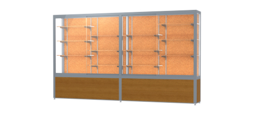 Waddell's Challenger Series are built with heavy-duty construction to withstand the rigors of a busy hallway, a crowded entrance way, or an industrial break room. With anodized durable aluminum extrusions, steel shelving hardware, 1/4" plate glass shelves and sliding tempered glass doors, the Challenger Series can endure real world conditions. Built-in locks are included to add protection to your possessions displayed inside. Choose from three different designs and several style options including wood grained vinyl, aluminum or black laminate to create a robust, yet sophisticated look for the environment of your choosing. The aluminum frame can be finished in Dark Bronze or Satin Natural to complement your decor and displays inside. Challenger is available in widths from 48" to a wide 144". All cases ship to you in Waddell's exceptional packaging and come fully assembled. Challenger is backed by Waddell's Limited Lifetime Warranty and made in the USA. Click here for shipping and general information. Ships from: Lebanon, Ohio. SKU: 10410ck-sn-k-wd.