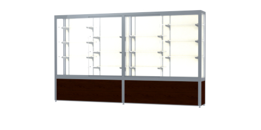 Waddell's Challenger Series are built with heavy-duty construction to withstand the rigors of a busy hallway, a crowded entrance way, or an industrial break room. With anodized durable aluminum extrusions, steel shelving hardware, 1/4" plate glass shelves and sliding tempered glass doors, the Challenger Series can endure real world conditions. Built-in locks are included to add protection to your possessions displayed inside. Choose from three different designs and several style options including wood grained vinyl, aluminum or black laminate to create a robust, yet sophisticated look for the environment of your choosing. The aluminum frame can be finished in Dark Bronze or Satin Natural to complement your decor and displays inside. Challenger is available in widths from 48" to a wide 144". All cases ship to you in Waddell's exceptional packaging and come fully assembled. Challenger is backed by Waddell's Limited Lifetime Warranty and made in the USA. SKU: 10410pb-sn-w-WD.