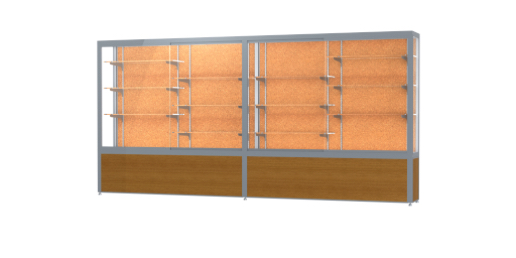 Challenger Light Oak Vinyl Display Case, Cork Back w/ Satin Natural aluminum frame finish, 66"H x 144"W x 16"D (Item #: 10412ck-sn-k-WD)