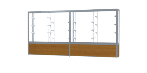 Waddell's Challenger Series are built with heavy-duty construction to withstand the rigors of a busy hallway, a crowded entrance way, or an industrial break room. With anodized durable aluminum extrusions, steel shelving hardware, 1/4" plate glass shelves and sliding tempered glass doors, the Challenger Series can endure real world conditions. Built-in locks are included to add protection to your possessions displayed inside. Choose from three different designs and several style options including wood grained vinyl, aluminum or black laminate to create a robust, yet sophisticated look for the environment of your choosing. The aluminum frame can be finished in Dark Bronze or Satin Natural to complement your decor and displays inside. Challenger is available in widths from 48" to a wide 144". All cases ship to you in Waddell's exceptional packaging and come fully assembled. Challenger is backed by Waddell's Limited Lifetime Warranty and made in the USA. SKU: 10412wb-sn-k-WD.
