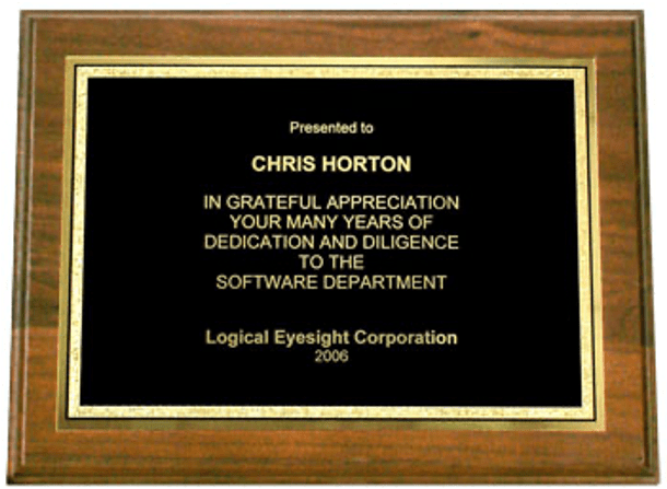 10" x 8" horizontal Walnut plaque with choice of engraving plate and finish. Price includes up to 13 lines of engraving & up to 35 characters (including spaces) per line using the standard formatting. Additional engraving and special formatting or fonts may be available for an additional charge; email customer service for pricing. Format your plaque with our industry-leading Personalization Wizard or leave the formatting to us! Free Text personalized engraving! (Optional: add your logo or camera-ready artwork). Quick-Ship . Ships from: Marquette, Michigan. SKU: 10x8walnuth-tc.