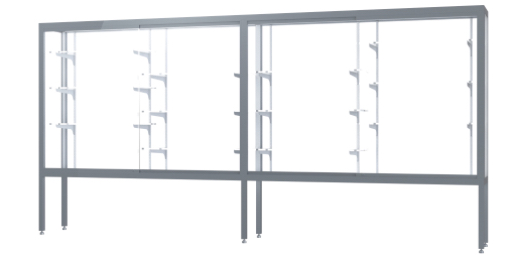 Challenger Aluminum Display Case, White Laminate Back w/ Satin Natural aluminum frame finish, 66"H x 144"W x 16"D (Item #: 11412-wb-sn-WD)