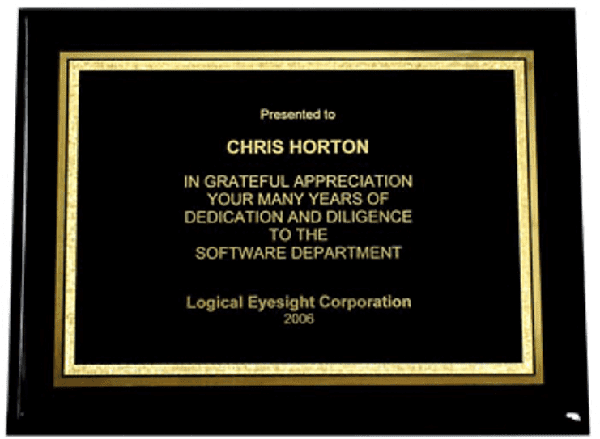 The plaque, the plate, and the engraving are very high quality and exceeded my expectations. I would definitely recommend Trophy Central to everyone.