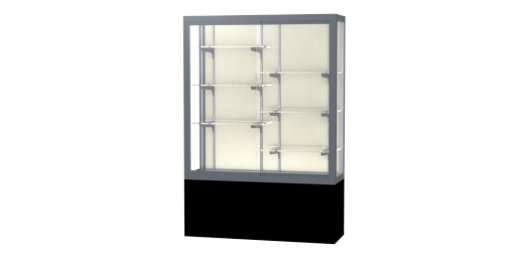 Waddell's Challenger Series are built with heavy-duty construction to withstand the rigors of a busy hallway, a crowded entrance way, or an industrial break room. With anodized durable aluminum extrusions, steel shelving hardware, 1/4" plate glass shelves and sliding tempered glass doors, the Challenger Series can endure real world conditions. Built-in locks are included to add protection to your possessions displayed inside. Choose from three different designs and several style options including wood grained vinyl, aluminum or black laminate to create a robust, yet sophisticated look for the environment of your choosing. The aluminum frame can be finished in Dark Bronze or Satin Natural to complement your decor and displays inside. Challenger is available in widths from 48" to a wide 144". All cases ship to you in Waddell's exceptional packaging and come fully assembled. Challenger is backed by Waddell's Limited Lifetime Warranty and made in the USA. SKU: 13404-pb-sn-WD.