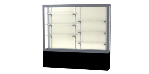 Waddell's Challenger Series are built with heavy-duty construction to withstand the rigors of a busy hallway, a crowded entrance way, or an industrial break room. With anodized durable aluminum extrusions, steel shelving hardware, 1/4" plate glass shelves and sliding tempered glass doors, the Challenger Series can endure real world conditions. Built-in locks are included to add protection to your possessions displayed inside. Choose from three different designs and several style options including wood grained vinyl, aluminum or black laminate to create a robust, yet sophisticated look for the environment of your choosing. The aluminum frame can be finished in Dark Bronze or Satin Natural to complement your decor and displays inside. Challenger is available in widths from 48" to a wide 144". All cases ship to you in Waddell's exceptional packaging and come fully assembled. Challenger is backed by Waddell's Limited Lifetime Warranty and made in the USA. SKU: 13406-pb-sn-WD.