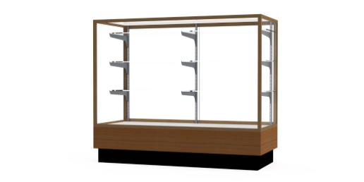 Waddell's Merchandiser display case offers a high visibility for its contents while limiting access to outside users, making this display case ideal for a retail environment. The locking system is designed to restrict access by having a frosted glass door in the rear with built-in locks. Because of its high security, you can be confident in displaying your most valued items in Merchandiser. These well-made store fixtures incorporate aluminum frames that are available in Champagne, Dark Bronze or Satin Natural finishes. You can accent these finishes with your choice of a Light Oak or Walnut wood-grained vinyl base. With these options, you are sure to find a style that suits your store environment. Merchandiser comes in three lengths of 4 feet, 5 feet or 6 feet to provide ample space for your display. All cases ship to you in Waddell's exceptional packaging and come fully assembled. Colossus is backed by Waddell's Limited Lifetime Warranty and made in the USA. SKU: 2010-4-gd-lv-WD.