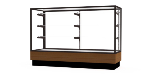 Waddell's Merchandiser display case offers a high visibility for its contents while limiting access to outside users, making this display case ideal for a retail environment. The locking system is designed to restrict access by having a frosted glass door in the rear with built-in locks. Because of its high security, you can be confident in displaying your most valued items in Merchandiser. These well-made store fixtures incorporate recognition aluminum frames that are available in Champagne, Dark Bronze or Satin Natural finishes. You can accent these finishes with your choice of a Light Oak or Walnut wood-grained vinyl base. With these options, you are sure to find a style that suits your store environment. Merchandiser comes in three lengths of 4 feet, 5 feet or 6 feet to provide ample space for your display. All cases ship to you in Waddell's exceptional packaging and come fully assembled. Colossus is backed by Waddell's Limited Lifetime Warranty and made in the USA. Click here for shipping and general information. Ships from: Lebanon, Ohio. SKU: 2010-5-bz-lv-wd.