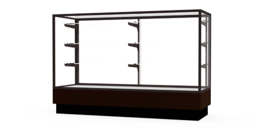 Waddell's Merchandiser display case offers a high visibility for its contents while limiting access to outside users, making this display case ideal for a retail environment. The locking system is designed to restrict access by having a frosted glass door in the rear with built-in locks. Because of its high security, you can be confident in displaying your most valued items in Merchandiser. These well-made store fixtures incorporate aluminum frames that are available in Champagne, Dark Bronze or Satin Natural finishes. You can accent these finishes with your choice of a Light Oak or Walnut wood-grained vinyl base. With these options, you are sure to find a style that suits your store environment. Merchandiser comes in three lengths of 4 feet, 5 feet or 6 feet to provide ample space for your display. All cases ship to you in Waddell's exceptional packaging and come fully assembled. Colossus is backed by Waddell's Limited Lifetime Warranty and made in the USA. SKU: 2010-5-bz-wv-WD.