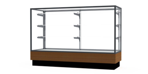 Waddell's Merchandiser display case offers a high visibility for its contents while limiting access to outside users, making this display case ideal for a retail environment. The locking system is designed to restrict access by having a frosted glass door in the rear with built-in locks. Because of its high security, you can be confident in displaying your most valued items in Merchandiser. These well-made store fixtures incorporate aluminum frames that are available in Champagne, Dark Bronze or Satin Natural finishes. You can accent these finishes with your choice of a Light Oak or Walnut wood-grained vinyl base. With these options, you are sure to find a style that suits your store environment. Merchandiser comes in three lengths of 4 feet, 5 feet or 6 feet to provide ample space for your display. All cases ship to you in Waddell's exceptional packaging and come fully assembled. Colossus is backed by Waddell's Limited Lifetime Warranty and made in the USA. SKU: 2010-5-sn-lv-WD.