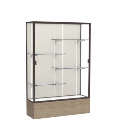 Reliant Driftwood Oak case, Plaque Fabric Back w/ Dark Bronze aluminum frame finish, 72"H x 48"W x 16"D (Item #: 2074pb-bz-dk-WD)