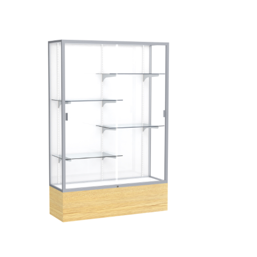Waddell's Reliant Series combines the strength and durability of aluminum with either woodgrain vinyl or oak veneer to frame your accolades. These six-foot display cases are available in three select widths or with an option of a smaller three-foot high case, as well. Anodized aluminum framing that is available in Champagne, Dark Bronze or Natural Satin secures the sliding glass doors and incorporates a built-in lock for a protected display of your treasured memorabilia. Illuminate and customize your display with a lighted cornice and 4 half-length adjustable shelves. With Reliant, you have the opportunity to make a display that is something truly your own. The accent wood completes the design for a clean and uncluttered appearance making Reliant display cases accommodating to either a traditional or contemporary setting. All cases ship to you in Waddell's exceptional packaging and come fully assembled. Reliant is backed by Waddell's Limited Lifetime Warranty and made in the USA. SKU: 2074wb-sn-lv-WD.