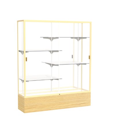 Waddell's Reliant Series combines the strength and durability of aluminum with either woodgrain vinyl or oak veneer to frame your accolades. These six-foot display cases are available in three select widths or with an option of a smaller three-foot high case, as well. Anodized aluminum framing that is available in Champagne, Dark Bronze or Natural Satin secures the sliding glass doors and incorporates a built-in lock for a protected display of your treasured memorabilia. Illuminate and customize your display with a lighted cornice and 4 half-length adjustable shelves. With Reliant, you have the opportunity to make a display that is something truly your own. The accent wood completes the design for a clean and uncluttered appearance making Reliant display cases accommodating to either a traditional or contemporary setting. All cases ship to you in Waddell's exceptional packaging and come fully assembled. Reliant is backed by Waddell's Limited Lifetime Warranty and made in the USA. SKU: 2075mb-gd-lv-WD.