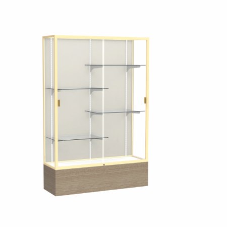 Reliant Driftwood Oak case, Plaque Fabric Back w/ Champagne aluminum frame finish, 72"H x 60"W x 16"D (Item #: 2075pb-gd-dk-WD)