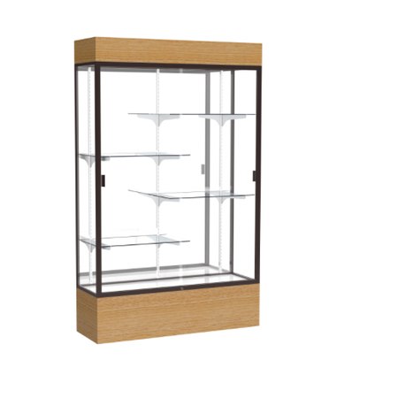 Reliant Lighted Natural Oak case, Mirror Back w/ Dark Bronze aluminum frame finish, 80"H x 48"W x 16"D (Item #: 2174mb-bz-ak-WD)
