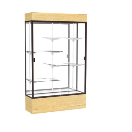 Reliant Lighted Light Oak Vinyl case, Mirror Back w/ Dark Bronze aluminum frame finish, 80"H x 48"W x 16"D (Item #: 2174mb-bz-lv-WD)