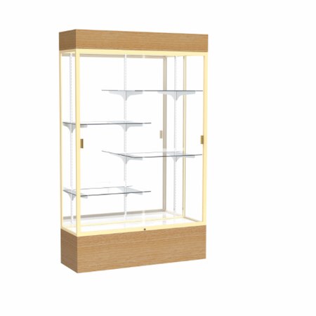 Reliant Lighted Natural Oak case, Mirror Back w/ Champagne aluminum frame finish, 80"H x 48"W x 16"D (Item #: 2174mb-gd-ak-WD)