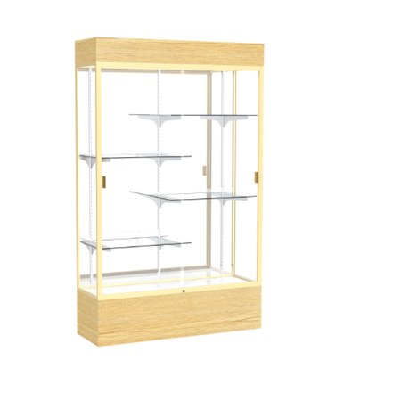 Reliant Lighted Light Oak Vinyl case, Mirror Back w/ Champagne aluminum frame finish, 80"H x 48"W x 16"D (Item #: 2174mb-gd-lv-WD)