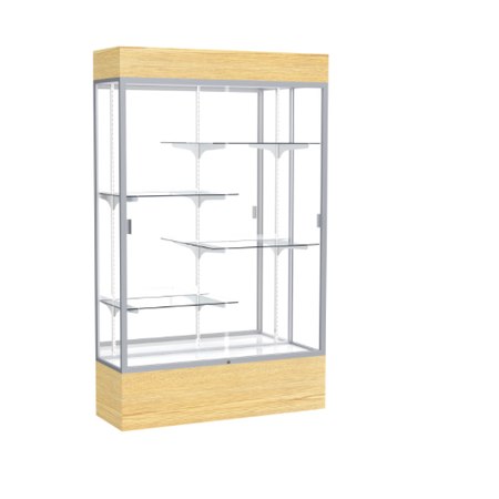 Reliant Lighted Light Oak Vinyl case, Mirror Back w/ Satin Natural aluminum frame finish, 80"H x 48"W x 16"D (Item #: 2174mb-sn-lv-WD)