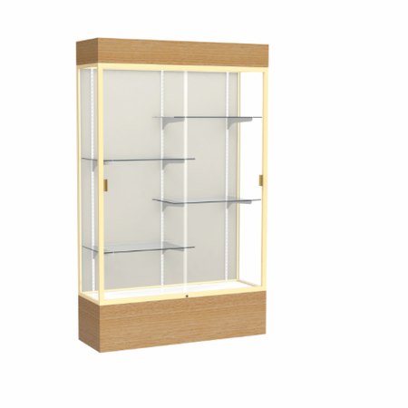 Reliant Lighted Natural Oak case, Plaque Fabric Back w/ Champagne aluminum frame finish, 80"H x 48"W x 16"D (Item #: 2174pb-gd-ak-WD)