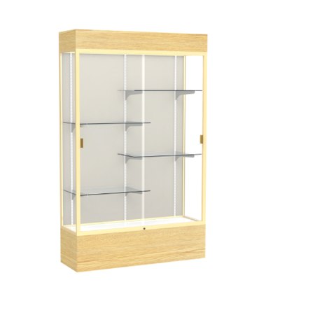 Reliant Lighted Light Oak Vinyl case, Plaque Fabric Back w/ Champagne aluminum frame finish, 80"H x 48"W x 16"D (Item #: 2174pb-gd-lv-WD)