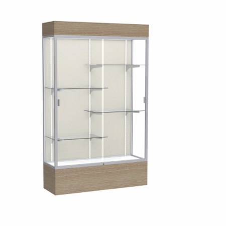 Reliant Lighted Driftwood Oak case, Plaque Fabric Back w/ Satin Natural aluminum frame finish, 80"H x 48"W x 16"D (Item #: 2174pb-sn-dk-WD)