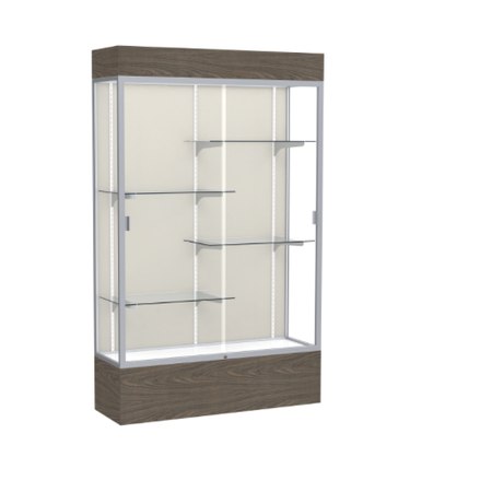 Reliant Lighted Walnut Vinyl case, Plaque Fabric Back w/ Satin Natural aluminum frame finish, 80"H x 48"W x 16"D (Item #: 2174pb-sn-wv-WD)
