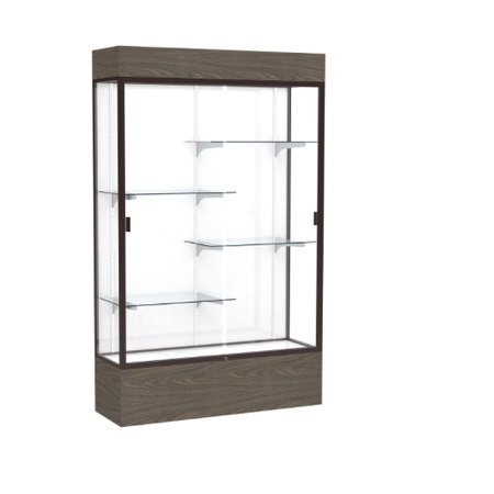 Reliant Lighted Walnut Vinyl case, White Laminate Back w/ Dark Bronze aluminum frame finish, 80"H x 48"W x 16"D (Item #: 2174wb-bz-wv-WD)