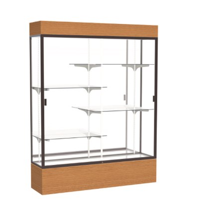 Reliant Lighted Carmel Oak case, Mirror Back w/ Dark Bronze aluminum frame finish, 80"H x 60"W x 16"D (Item #: 2175mb-bz-mk-WD)