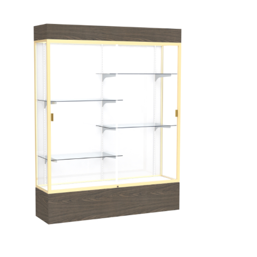 Reliant Lighted Walnut Vinyl case, White Laminate Back w/ Champagne aluminum frame finish, 80"H x 60"W x 16"D (Item #: 2175wb-gd-wv-WD)