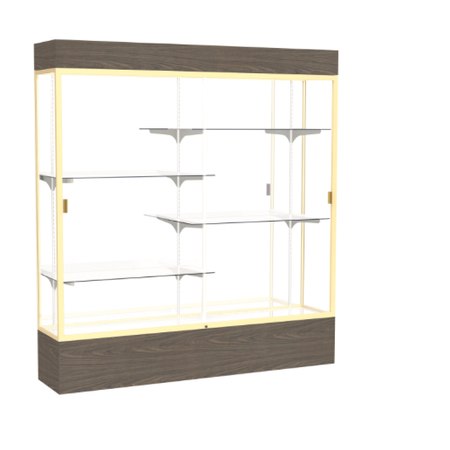 Reliant Lighted Walnut Vinyl case, Mirror Back w/ Champagne aluminum frame finish, 80"H x 72"W x 16"D (Item #: 2176mb-gd-wv-WD)