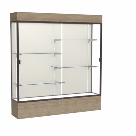 Reliant Lighted Driftwood Oak case, Plaque Fabric Back w/ Dark Bronze aluminum frame finish, 80"H x 72"W x 16"D (Item #: 2176pb-bz-dk-WD)