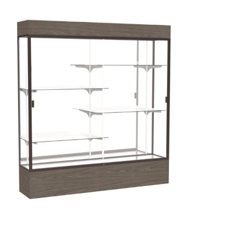 Reliant Lighted Walnut Vinyl case, Plaque Fabric Back w/ Dark Bronze aluminum frame finish, 80"H x 72"W x 16"D (Item #: 2176pb-bz-wv-WD)