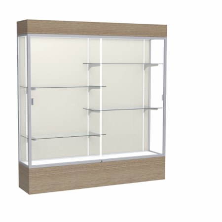 Reliant Lighted Driftwood Oak case, Plaque Fabric Back w/ Satin Natural aluminum frame finish, 80"H x 72"W x 16"D (Item #: 2176pb-sn-dk-WD)