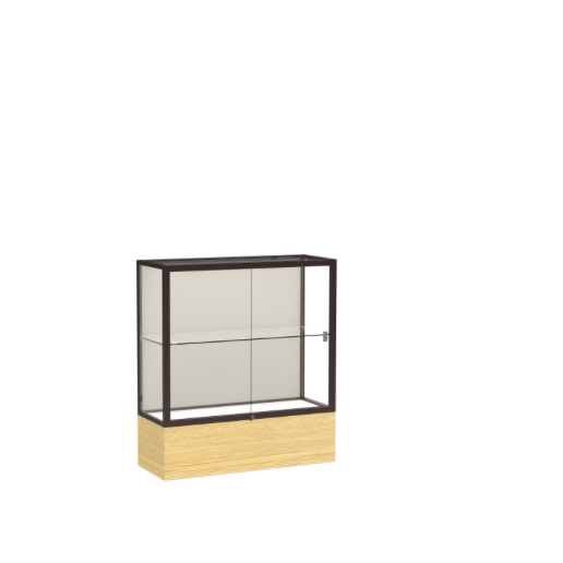 Waddell's Reliant Series combines the strength and durability of aluminum with either woodgrain vinyl or oak veneer to frame your accolades. These six-foot display cases are available in three select widths or with an option of a smaller three-foot high case, as well. Anodized aluminum framing that is available in Champagne, Dark Bronze or Natural Satin secures the sliding glass doors and incorporates a built-in lock for a protected display of your treasured memorabilia. Illuminate and customize your display with a lighted cornice and 4 half-length adjustable shelves. With Reliant, you have the opportunity to make a display that is something truly your own. The accent wood completes the design for a clean and uncluttered appearance making Reliant display cases accommodating to either a traditional or contemporary setting. All cases ship to you in Waddell's exceptional packaging and come fully assembled. Reliant is backed by Waddell's Limited Lifetime Warranty and made in the USA. SKU: 2281pb-bz-lv-WD.