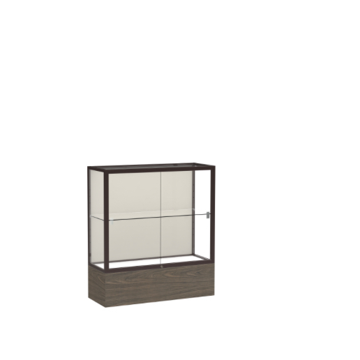 Reliant Walnut Vinyl case, Plaque Fabric Back w/ Dark Bronze aluminum frame finish, 40"H x 36"W x 14"D (Item #: 2281pb-bz-wv-WD)