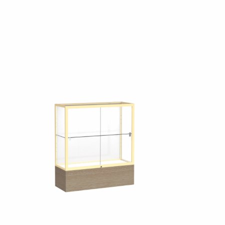 Reliant Driftwood Oak case, White Laminate Back w/ Champagne aluminum frame finish, 40"H x 36"W x 14"D (Item #: 2281wb-gd-dk-WD)