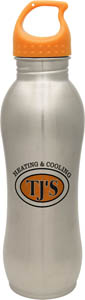 An easy to grip hourglass shape makes this 18/8 Stainless Steel bottle easy to grip. Features a wide mouth for adding ice. Capacity: 25 oz. The price includes one-color, one-side imprint (additional colors and imprint options may be available)! Imprint area: 2-3/4 x 2-1/4. Color: Orange. Ships from: Aliquippa, Pennsylvania. SKU: 23085-gla.