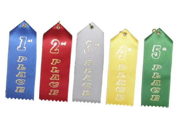 1st through 6th Place (color of ribbon/print color is standard and can't be changed) - Please select below. 2" x 6" (card & string included!!). Sold in packages of 25. Also see: Award Ribbons and Custom Award Ribbons. Ships from: Topeka, Indiana. SKU: 2dgsx-tw.