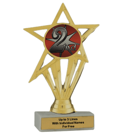 Our economy insert trophy features a real white marble base with a gold insert holder and 2" 2nd place insert. Measures approximately 6 7/8" - 7 1/8" tall. Add up to three lines of text personalized engraving for free, including individual names! A great choice for acknowledging excellence and victory. Ships from: Marquette, Michigan. SKU: 2nd-e-part-i-tc.