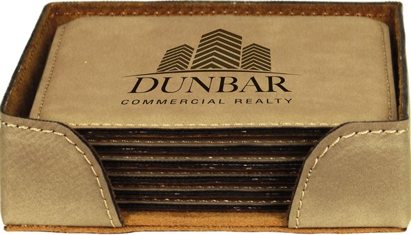 4" x 4" Square Laserable Leatherette 6-Coaster Set. Back of the coaster is faux suede. Ships from: Marquette, Michigan. SKU: gft40x-tc.