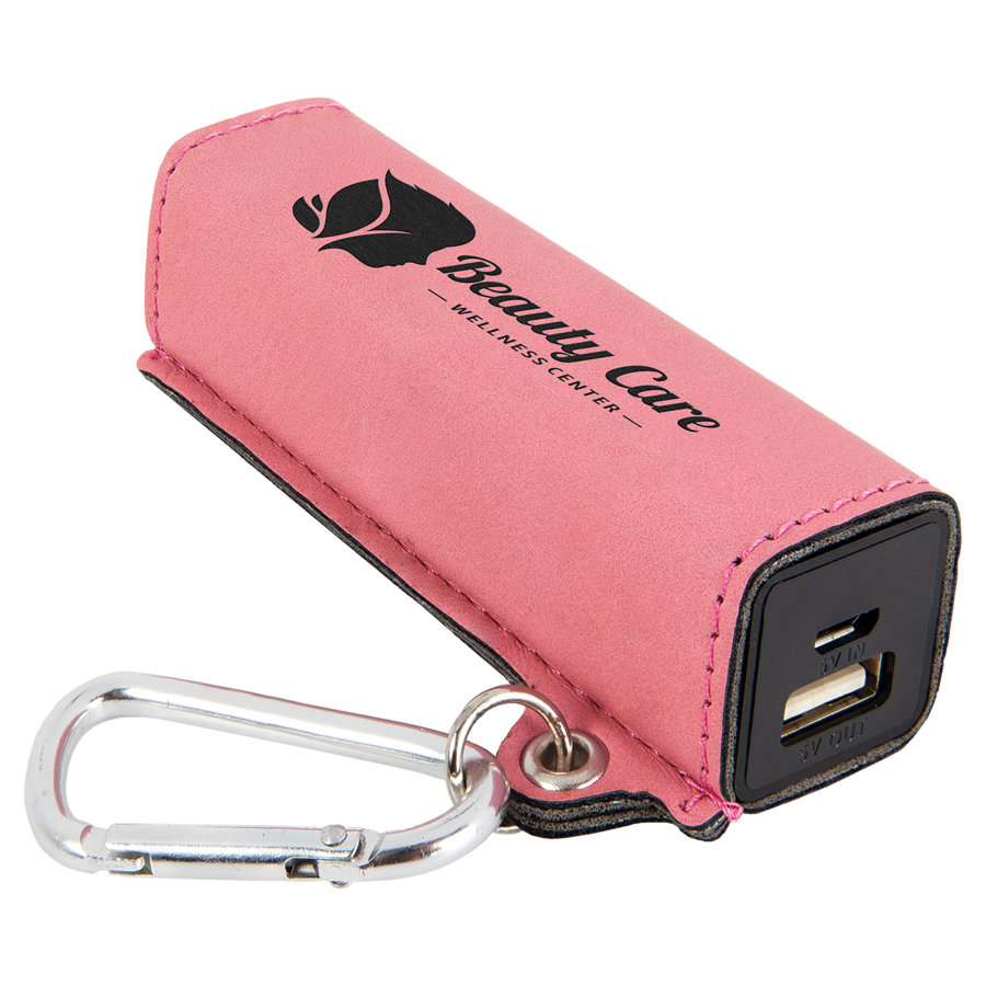 Laserable Leatherette 2200 mAh Power Bank with USB Cord. Overall Size: 3 5/8"(L) x 1"(W) Power Bank comes with a small, silver carabiner. Cannot be shipped by air. Input: DC 5V Output: DC 5V Watt Hours: 7.92USB cord is 12 1/2" long Ships from: Marquette, Michigan. SKU: gft113x-tc.