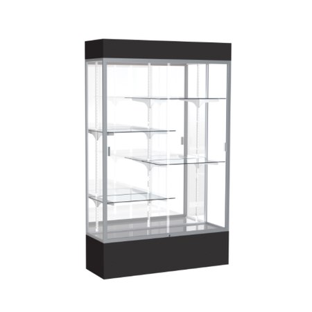 Spirit Black Display Case (Lighted), Mirror Back w/ Satin Natural aluminum frame finish, 80"H x 48"W x 16"D (Item #: 3174mb-sn-bk-WD)