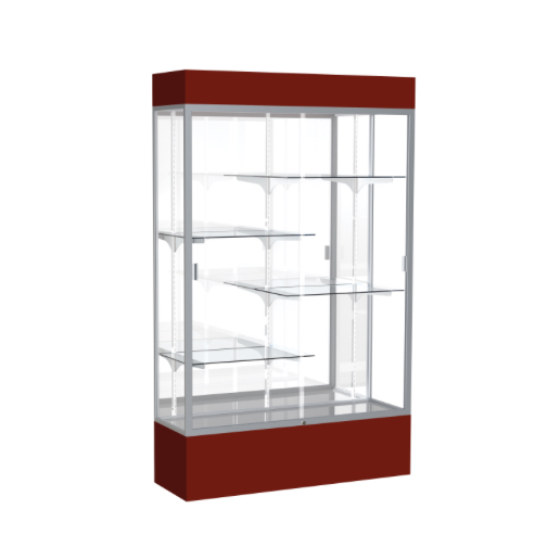 Spirit Maroon Display Case (Lighted), Mirror Back w/ Satin Natural aluminum frame finish, 80"H x 48"W x 16"D (Item #: 3174mb-sn-mn-WD)