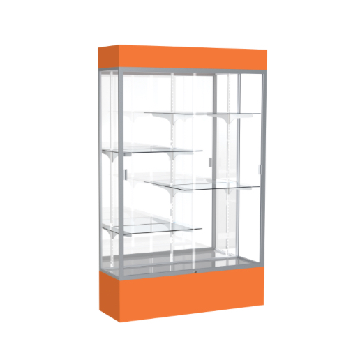 Spirit Orange Display Case (Lighted), Mirror Back w/ Satin Natural aluminum frame finish, 80"H x 48"W x 16"D (Item #: 3174mb-sn-or-WD)