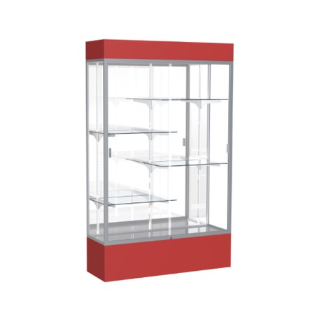 Spirit Red Display Case (Lighted), Mirror Back w/ Satin Natural aluminum frame finish, 80"H x 48"W x 16"D (Item #: 3174mb-sn-rd-WD)